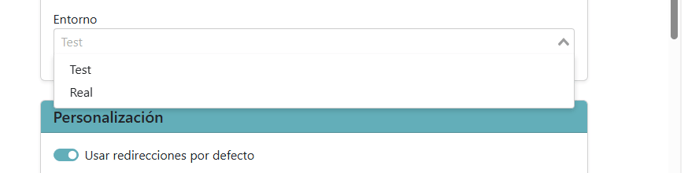 También se podrá seleccionar si las operaciones que se van a realizar se realizarán en un entorno real o en uno de pruebas. Si establecemos como test las operaciones no serán reales, en cambio si lo establecemos como real, si que se realizarán las operaciones.